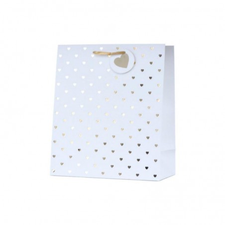 Torebka prezentowa biała w złote serca T010