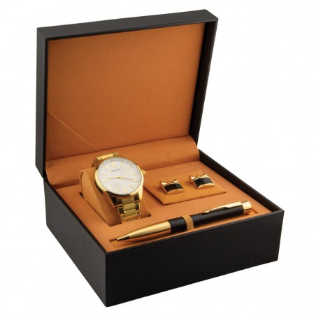 Zestaw Długopis Parker Urban Czarny + Zegarek Perfect + Spinki [1931666/20] to wyraz wyjątkowej klasy i funkcjonalności. Długopis Parker Urban czarny w głębokim kolorze czerni emanuje wyrafinowanym pięknem. Jego gładka faktura i precyzyjny chwyt sprawiają, że tworzenie notatek to czysta przyjemność. Dzięki zegarkowi Perfect nie tylko zawsze będziesz odmierzać czas, ale i będziesz na czasie. To narzędzie to wyraz dobrego gustu i osobistego stylu. Jego minimalistyczna tarcza, niezawodny mechanizm i eleganckie wykończenie tworzą harmonijne połączenie tradycji z nowoczesnością. Dodatkowo, zestaw zawiera stylowe spinki do mankietów, które dodają szyku i elegancji Twojemu strojowi, podkreślając dbałość o detale. Całość zestawu jest starannie zapakowana w eleganckim opakowaniu, podkreślającym wyjątkowość i rangę tych akcesoriów.