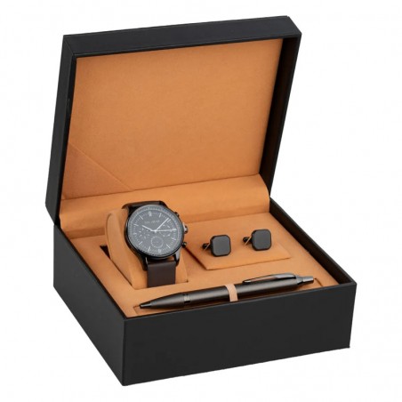 W praktyce otrzymujesz gotowe rozwiązanie. Zegarek do noszenia każdego dnia, długopis zawsze pod ręką i spójne dodatki, które dopełniają całość. Nie musisz niczego dobierać osobno ani zastanawiać się nad dopasowaniem — wszystko zostało już przemyślane.